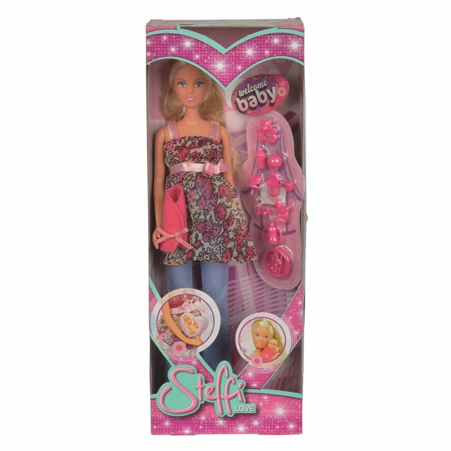 Children will enjoy playing with the Steffi Love – Welcome Baby pregnant doll and accessories. Steffi Love Doll has flowing hair, a charming, fashionable flowery shirt with a bow, and pants that showcase her pregnancy while also showing off her flair. With her stylish outfit and beauty, she flaunts her fashion and grace. Slacks with heels are also included. Steffi is a lifelike doll that can move both her arms and legs. Inside her belly, you will find a baby figure that can be removed and played with separately. The baby can then be out back inside for safe keeping. There are 13 pieces in this set. A very versatile piece that a youngster can take on the move as a companion or play with at home. This is a perfect toy for children above 4 years old and would make a lovely gift for any occasion.
